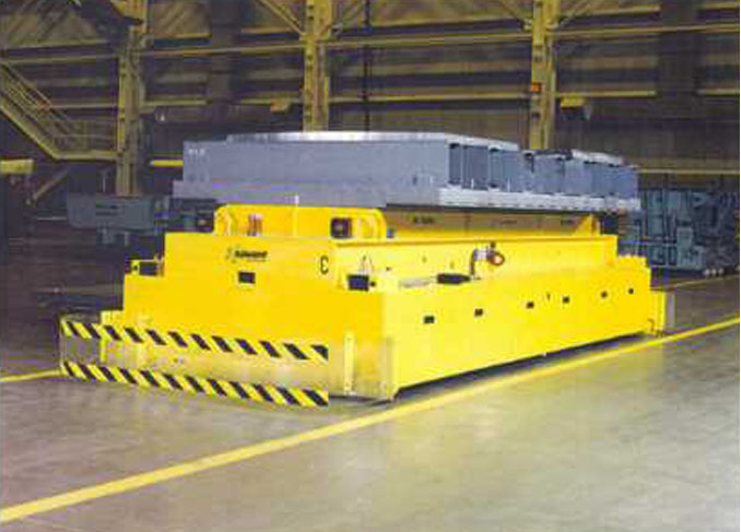 大吨位背负式AGV,适用于搬运大型构件或重型产品设备等,物料可以直接在AGV上进行搬运。